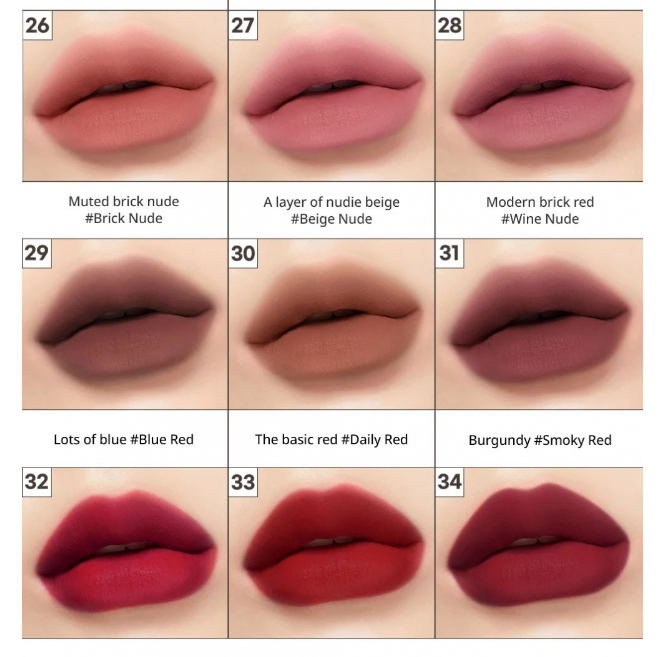 The Peripera Ink Velvet Lip Tint is a long-lasting lip tint with a soft whipped cream-like texture that glides onto skin and fills in your lips' fine lines for a smooth finish. Coats lips in a highly pigmented tint with vivid colour payoff. Its velvety ink-like formula is ideal for gradient or full-on lip makeup.